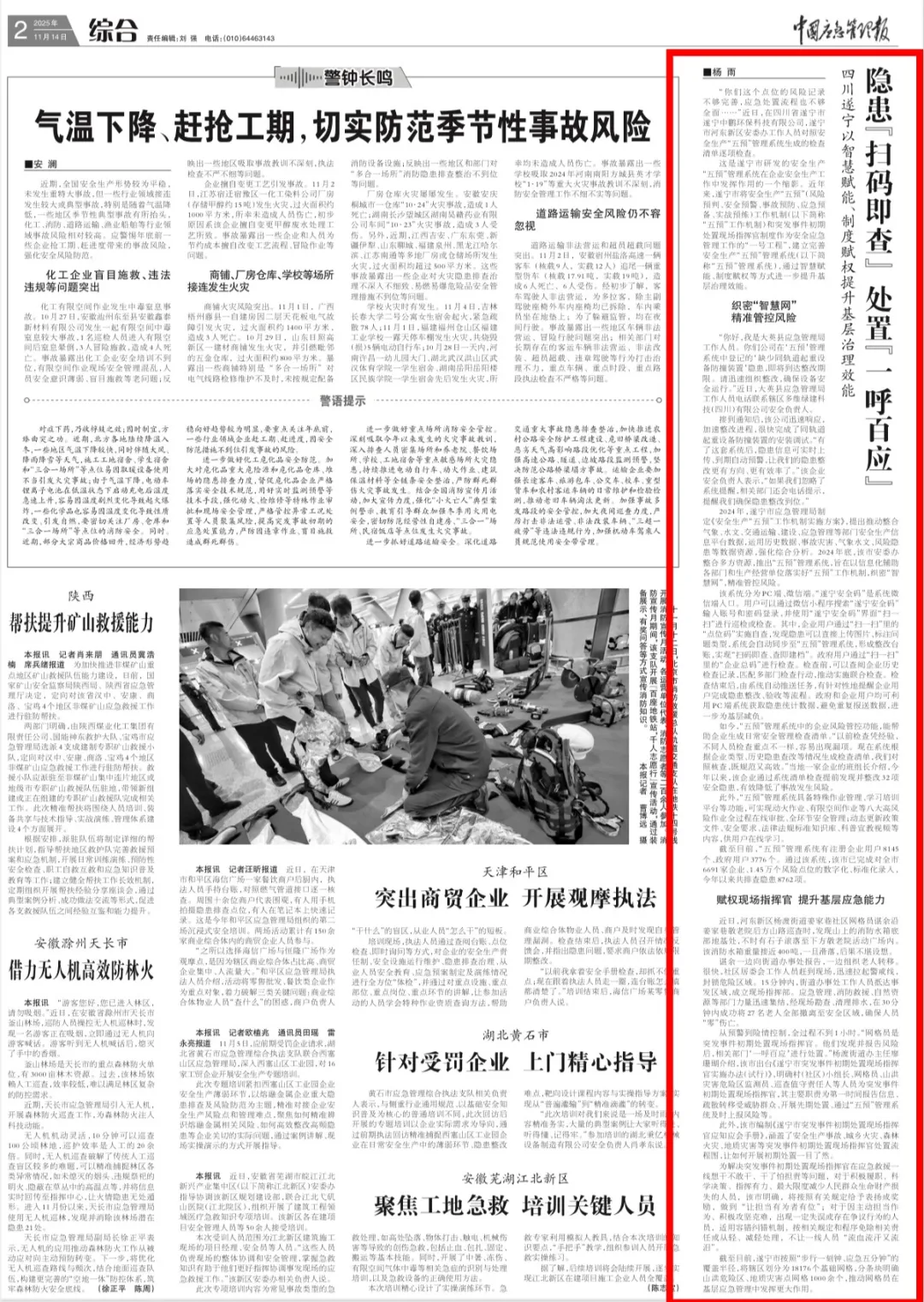 - 隐患“扫码即查” 处置“一呼百应”——四川遂宁以智慧赋能、制度赋权提升基层治理效...2025-11-20