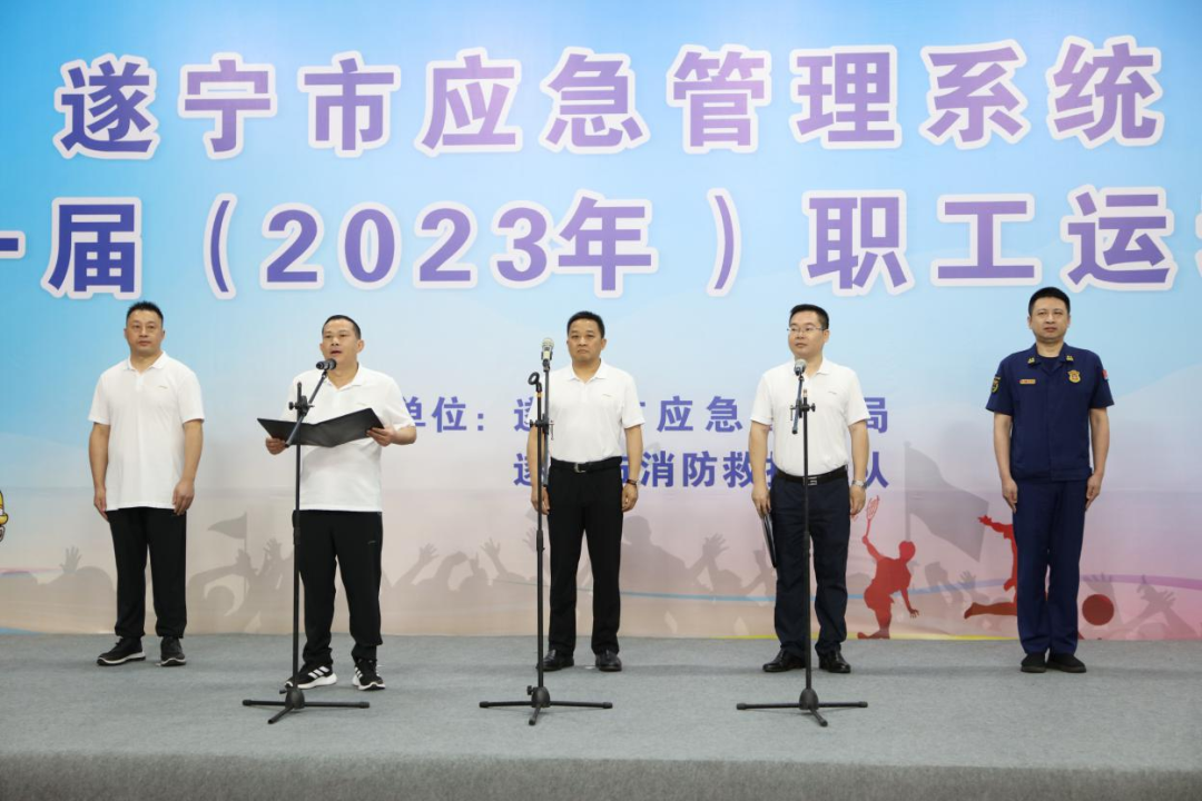市政府副秘书长、市应急管理局局长宋建军在开幕式致辞中表示,此次运动会是全市应急系统的第一届运动会,是一次检验全市应急系统队伍建设成果的盛会。希望大家把体育精神转化为做好本职工作的不竭动力和豪迈热情,以昂扬的斗志、拼搏的精神,积极投身应急管理事业新的征程,在新时代展现新作为、担当新使命、开创新局面,加快建设成渝中部现代化建设示范市和锂电之都贡献应急力量!