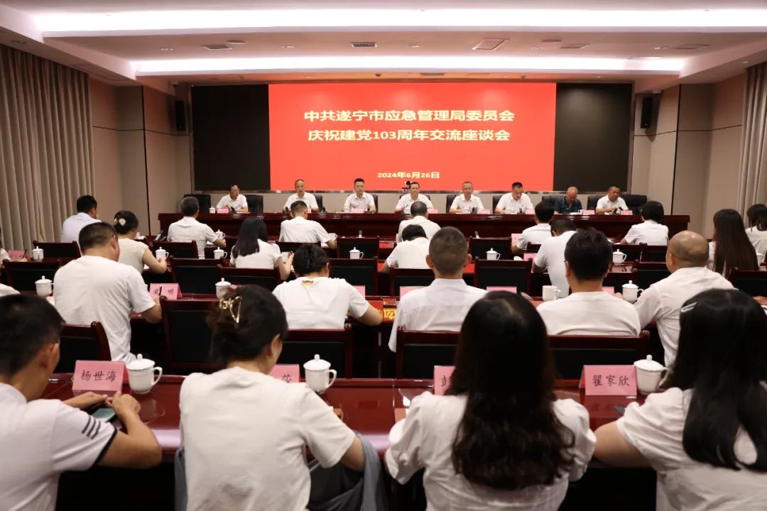 6月26日,为进一步增强党组织的凝聚力、向心力和战斗力,激励党员干部充分发挥先锋模范作用,中共遂宁市应急管理局委员会召开庆祝建党103周年交流座谈会。市政府副秘书长,市应急局党委书记、局长宋建军讲授专题党课,市应急局在家局领导参加会议,机关党委书记杨劲主持会议。