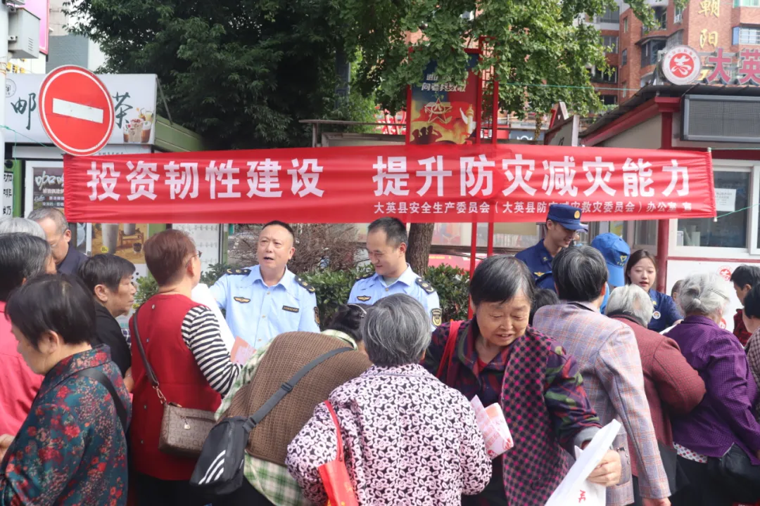 10月13日,在第36个国际减灾日到来之际,大英县安全生产委员会(大英县防灾减灾救灾委员会)办公室在朝阳广场组织开展了以“投资韧性建设,提升防灾减灾能力”为主题的宣传活动。