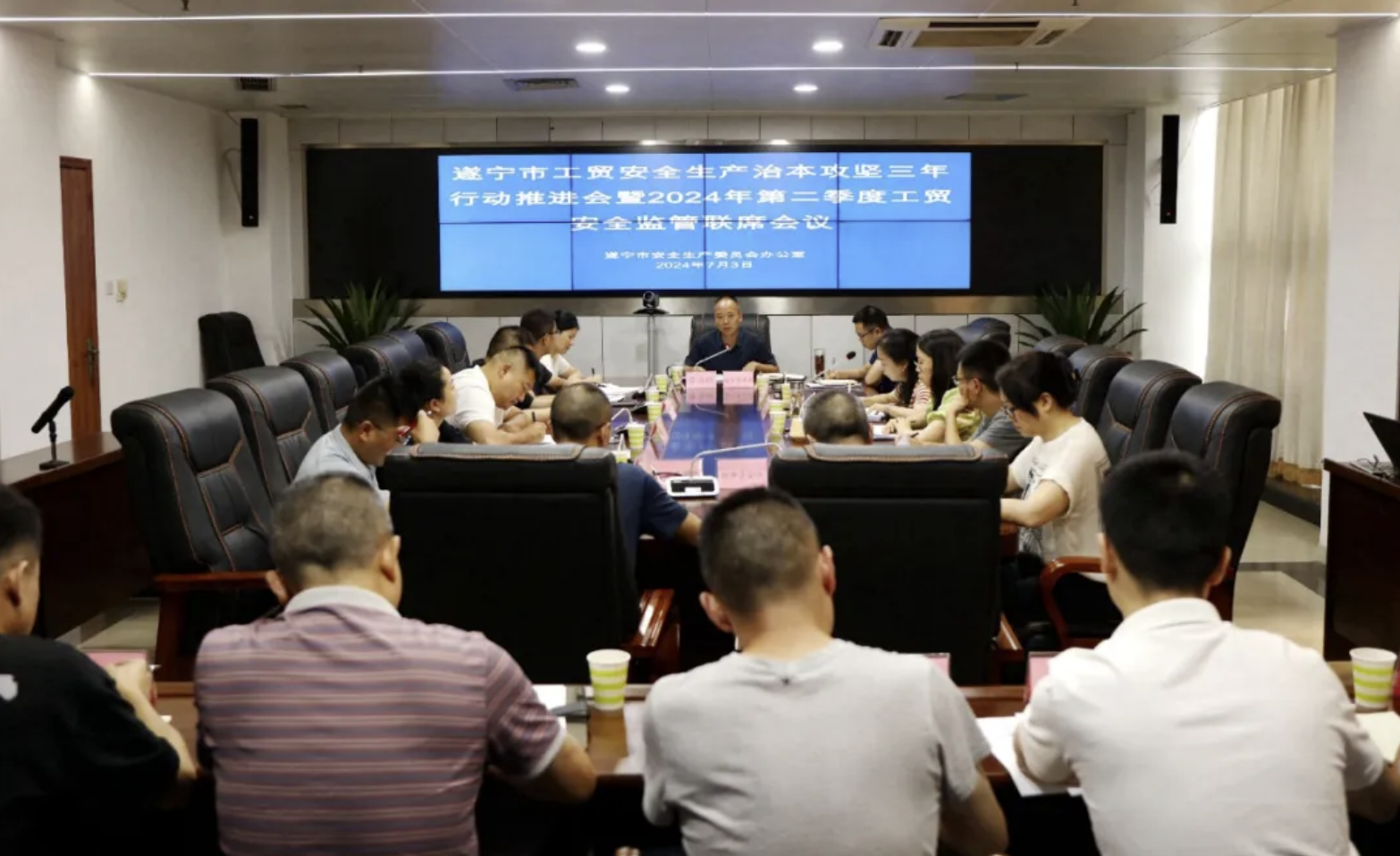 7月3日,遂宁市工贸安全生产治本攻坚三年行动推进会暨2024年第二季度工贸安全监管联席会议召开。市安办副主任、市应急局副局长廖治刚对下步工作进行安排部署。市经济和信息化局、市应急管理局、市市场监管局、市农业农村局、市商务局相关业务科室负责人;各县(市、区)、市直园区应急(分)局负责工贸安全的分管领导参加会议。
