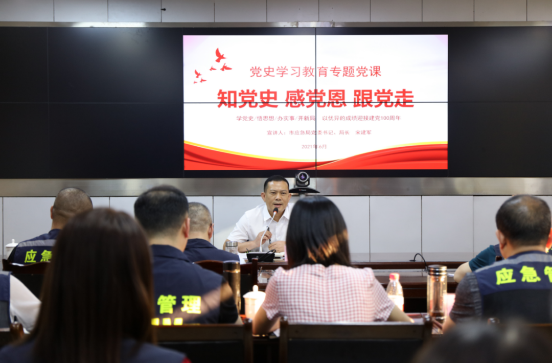 为丰富党史学习教育形式,推动党史学习教育走深走实,引导党员干部学党史、悟思想、办实事、开新局,6月10日,遂宁市应急管理局党委书记、局长宋建军以《知党史 感党恩 跟党走》为题,为全局党员干部职工讲了一堂生动的党史学习教育专题党课。