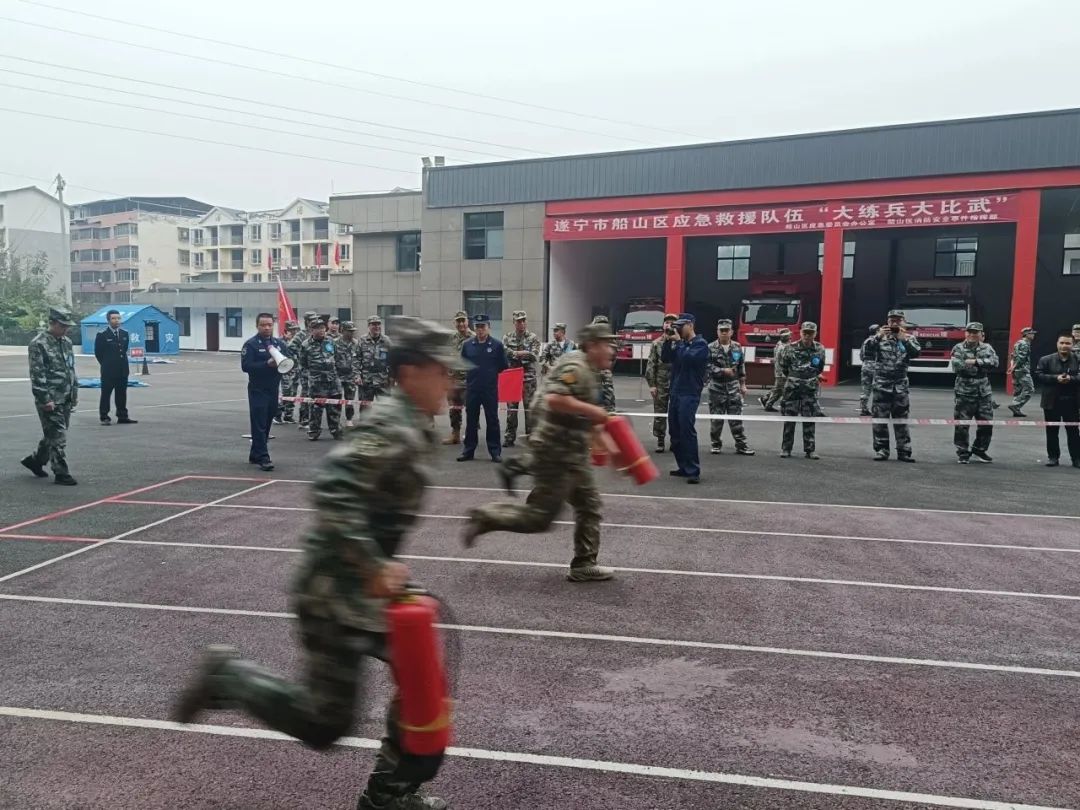 本次竞赛是对船山区综合应急救援队伍的一次全面检验,也是推进乡镇、街道综合应急救援队正规化、准军事化建设的重要举措。船山区也将持续牢固树立“人民至上、生命至上”重要理念,进一步优化应急救援机制、建强应急救援队伍、夯实应急救援基础保障,切实凝聚应急处突工作合力,维护人民群众生命财产安全。