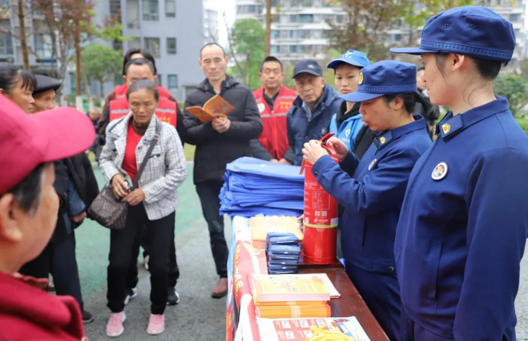 “大家先看压力表指针是否在绿色区域,拔保险销时拇指要顶住这里……”在灭火器实操环节,宣传员边说边举起灭火器,对准模拟火盆根部按下压把,白色干粉瞬间喷涌而出,火盆里的火苗应声熄灭。“我来试试!”居民群众纷纷主动上前,在指导下完成操作。活动中,志愿者们共发放《消防安全手册》200余册、“三清三关”传单300余份,送出包含防火口罩、应急手电筒的安全礼包50余个。