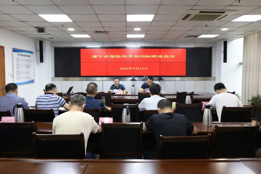 9月13日,遂宁市召开危险化学品局际联席会议。会议通报了危险化学品企业老旧装置(设备)整治情况,并对下一步危化品企业老旧装置安全风险防控专项整治工作进行再安排、再部署。市应急局副局长侯国辉主持会议并安排部署工作。