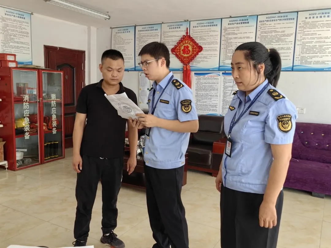 “这个设备为什么一直在报警?为什么你们没及时处理这个问题?”检查过程中,执法人员发现加油站内存在的安全隐患,便现场指导工作人员进行整改,提出整改要求,制作并下发相关行政执法文书,责令企业限期整改。同时,执法人员还对加油站负责人和工作人员进行现场普法宣传,讲解安全形势、政策及相关法律法规。