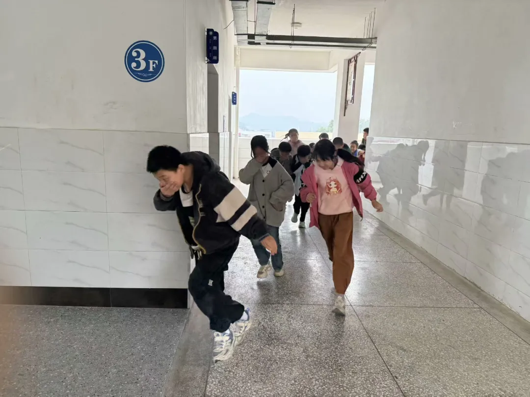 上午9点50分,随着校园广播系统中突然响起的火灾警报声,整个校园在瞬间被紧张而有序的氛围所笼罩。警报响起后,各班级的学生在班主任老师及专门负责疏散的教职员工的引导下,迅速采取弯腰低姿、用手捂住口鼻的防护措施,严格按照事先规划的应急疏散路线,安全、有序地撤离到了学校预先设定的“安全避难区域”。