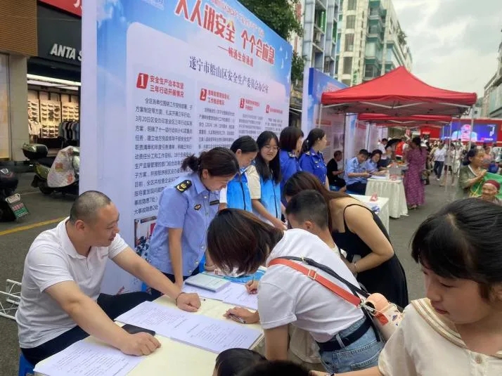 6月16日,围绕“人人讲安全、个个会应急——畅通生命通道”活动主题,射洪市应急管理局在新世纪广场组织开展2024年“安全宣传咨询日”活动。