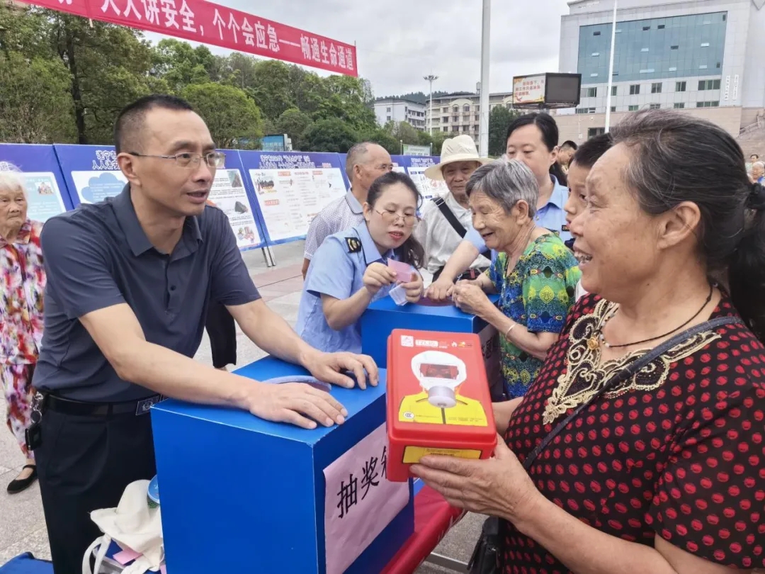 在活动现场,各单位通过设置宣传咨询台、展出安全宣传教育展板、发放安全科普资料等多种方式,向群众广泛宣传安全生产法律法规、食品安全、森林防火、道路交通安全等安全知识,形式多样、内容丰富的宣传形式吸引了广大群众驻足咨询。在“安全知识有奖答题区”灭火器、过滤式消防自救呼吸器等奖品吸引了很多群众驻足,县应急局以有奖答题的方式助推安全生产知识宣传,让安全生产知识宣传更接地气,使广大人民群众在寓教于乐的同时,潜移默化地接受安全宣传教育,营造了浓厚的“安全生产月”氛围。