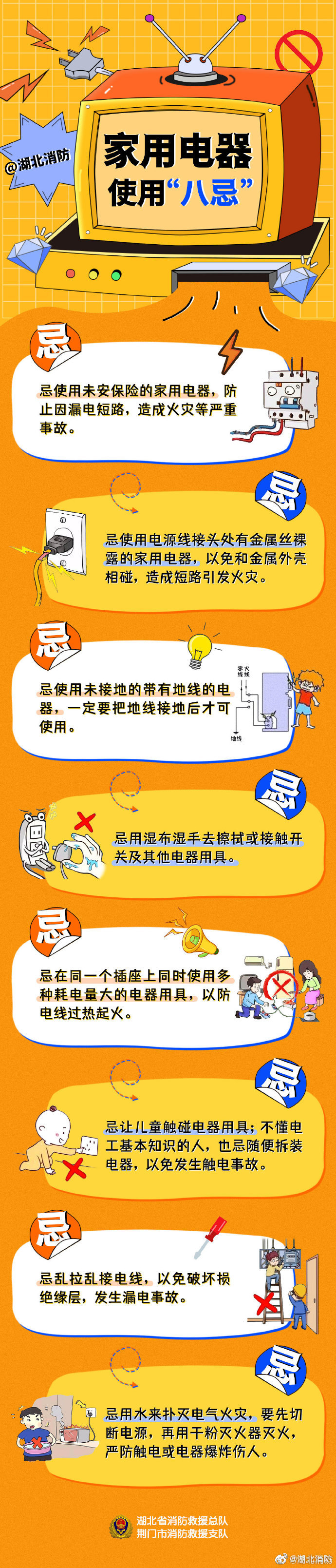 电器火灾是家庭火灾的元凶之一,你知道该如何预防电器火灾吗?家用电器的安全使用有“八忌”,大家平时一定要多加防范。