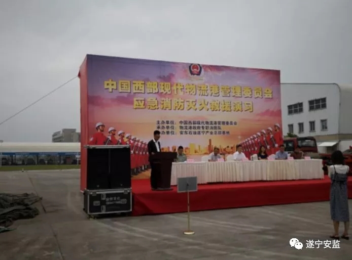6月14日,在中国西部现代物流港安东石油遂宁产业总部基地,物流港政府专职消防队开展了一次应急消防灭火救援演习。