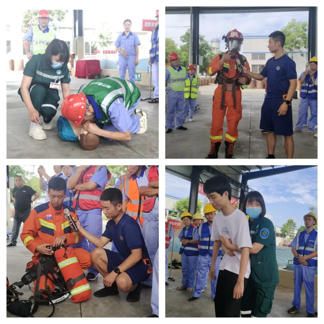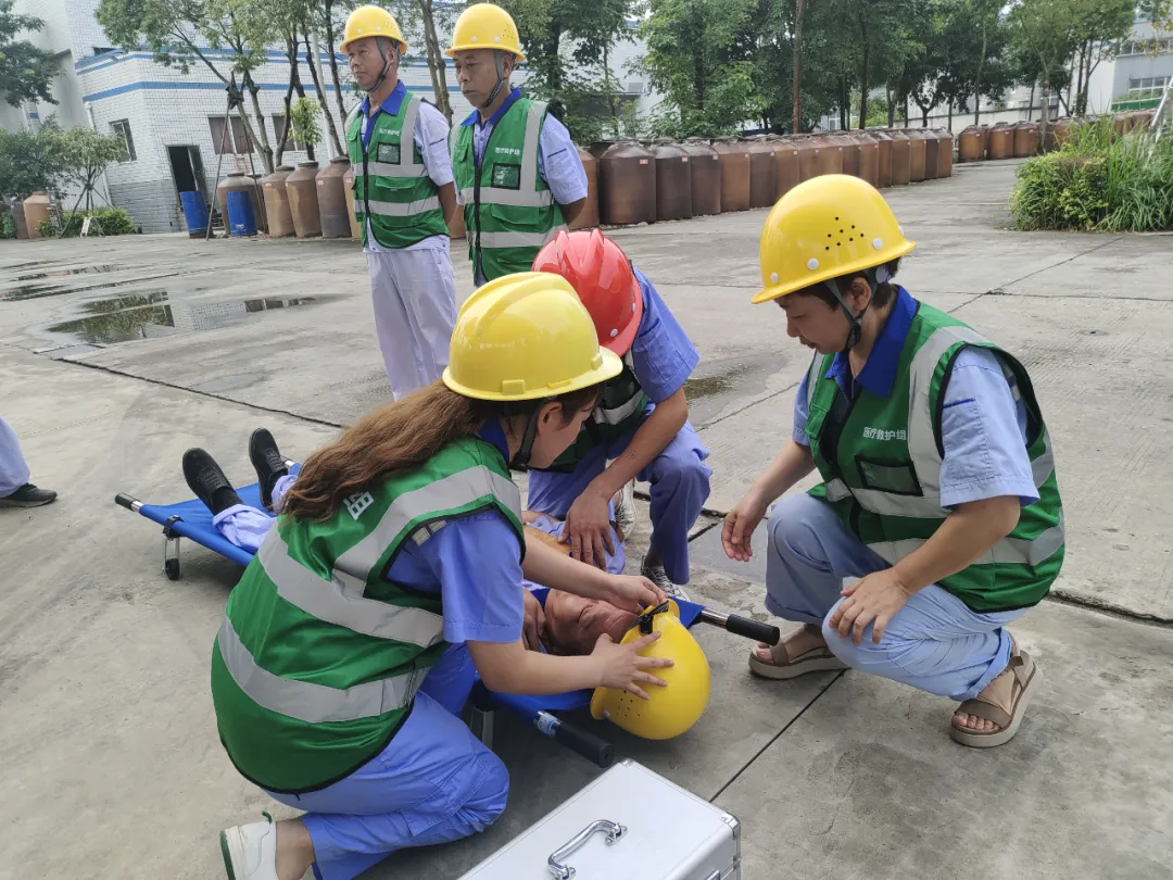 演练虽然结束,但活动还在开展。为进一步强化企业安全应急知识,本次活动还邀请了射洪市消防救援大队和中医院急诊科开展专项点评和现场示范。市消防救援大队两名队员就正压式空气呼吸器穿戴、使用、保养等知识作解说演示,市中医院急诊科医护人员就心肺复苏和海姆立克急救知识作讲解示范,现场观摩人员积极参与学习与实践。