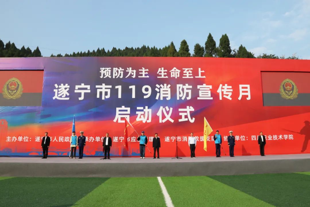 11月9日,遂宁市举行119宣传月启动仪式。副市长张韬出席启动仪式。