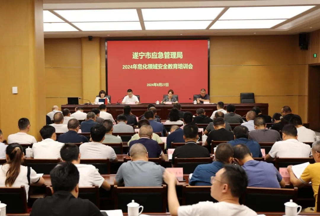 市应急局四级调研员李彬,各县(市、区)和市直园区应急(分)局分管负责人,相关业务科(股)室负责人,大英红旗化工园区、射洪锂电化工园区、遂宁安居化工园区应急管理机构负责人,危化生产企业主要负责人、分管负责人及安全管理人员等参加培训。