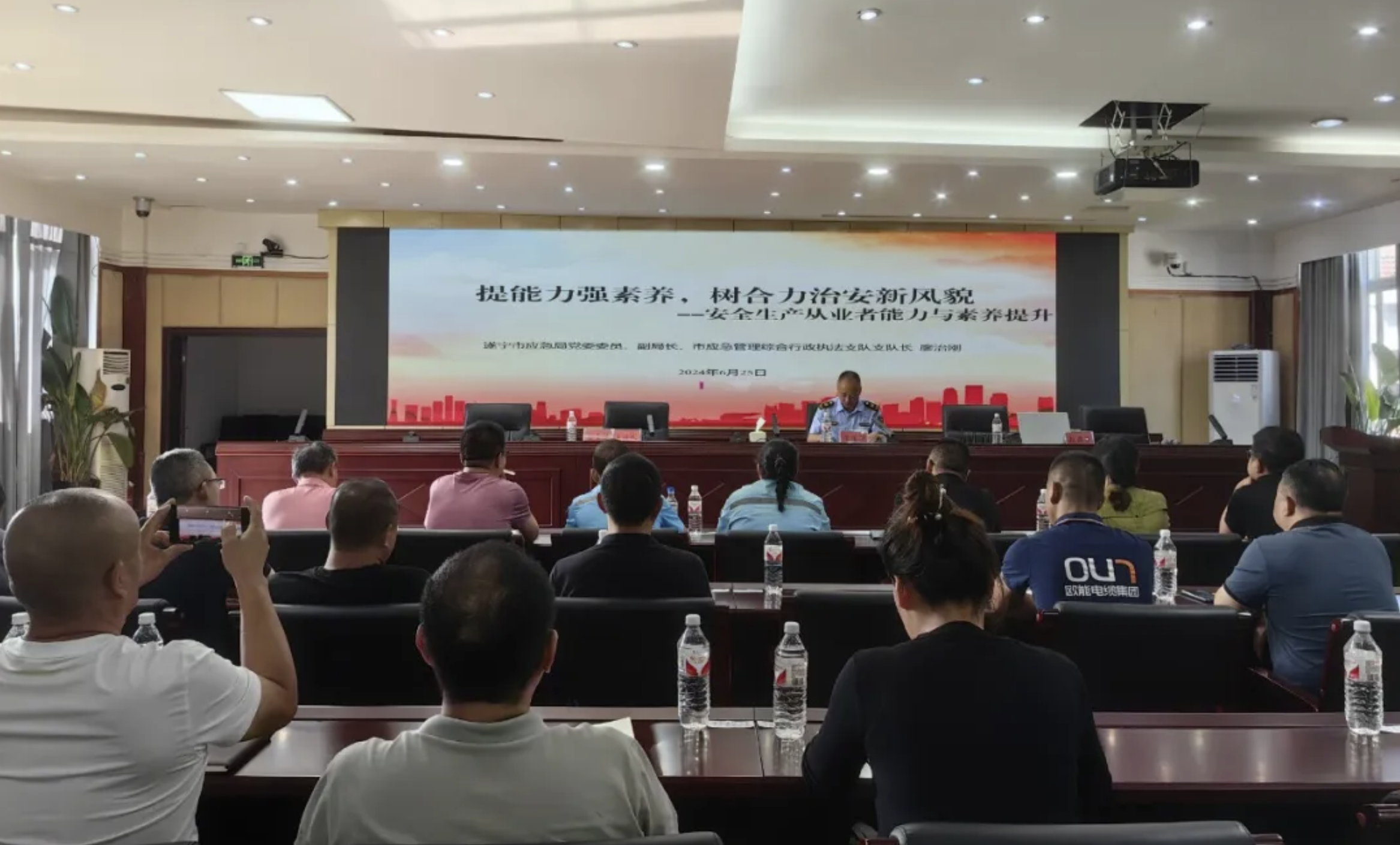 6月25至26日,蓬溪县召开了“2024年应急管理、安全生产执法人员入职培训和复训暨安全生产治本攻坚三年行动专题培训”,以“提能力、强素养,凝治安新合力”为主题,覆盖各个岗位的安全生产从业者,以针对性的培训提升监管、执法人员的“治安”素养,以服务性的教育提升企业自主“护安”能力,以指向性的引领巩固全县“强安”目标。本次培训安委会相关成员单位及企业安全负责人及重点行业企业140余人参加。