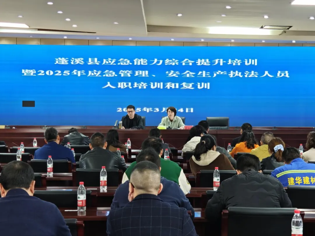近日,蓬溪县安全生产委员会办公室主持召开应急能力综合提升培训暨蓬溪县2025年应急管理、安全生产执法人员入职培训和复训。各乡镇(街道)、县安委会成员单位业务骨干及县域重点企业安全管理人员共100余人参训。