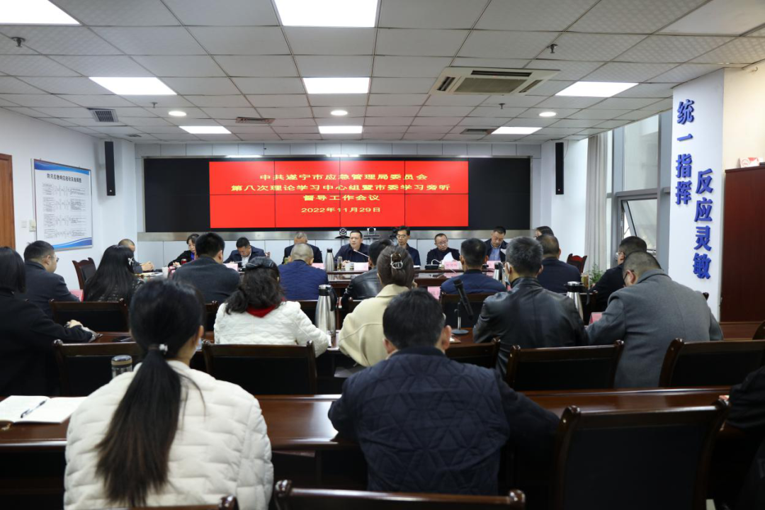 11月29日,中共遂宁市应急管理局党委第八次理论学习中心组暨市委学习旁听督导工作会议召开。市委理论学习中心组旁听督导工作第九组组长、市直机关工委副书记刘洋到会督导,市政府副秘书长、市安办主任、市应急局局长宋建军主持会议并讲话,市委理论学习中心组旁听督导工作第九组有关同志、局领导班子及全体在家党员参加会议。