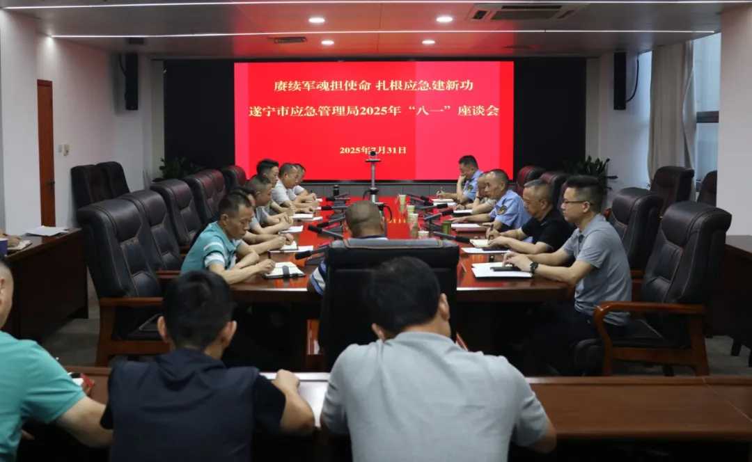 7月31日,遂宁市应急管理局召开2025年“八一”座谈会,向奋战在应急管理一线的退役军人致以崇高敬意与节日问候。在家局领导、退役军人、现役军人家属代表齐聚一堂,回忆峥嵘岁月,共谈初心使命。