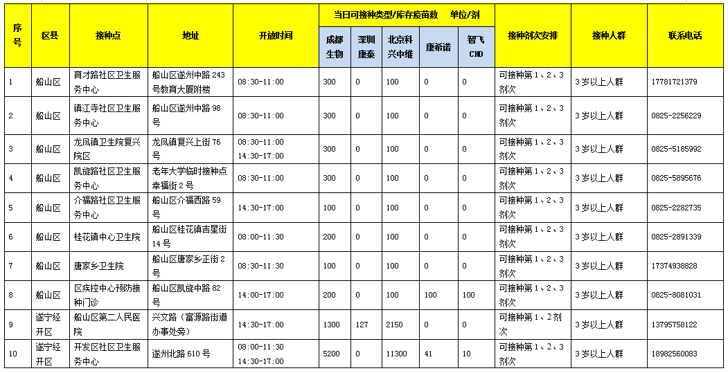 为方便群众接种,现将遂宁市1月25日新冠病毒疫苗接种点安排公布如下,本批次疫苗主要用于辖区符合接种条件的人群接种。