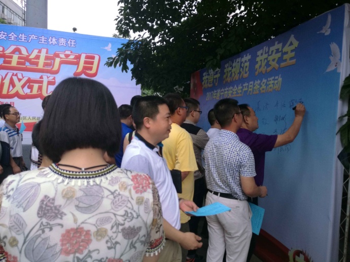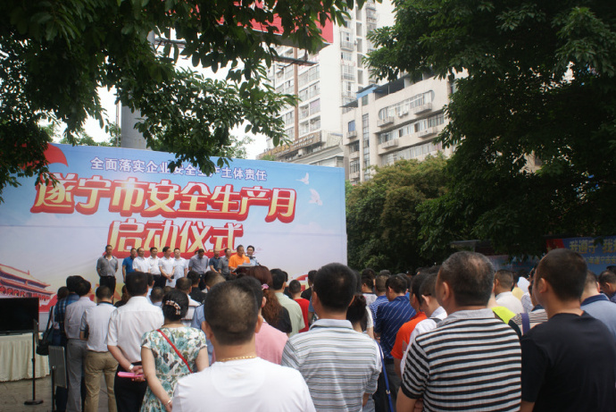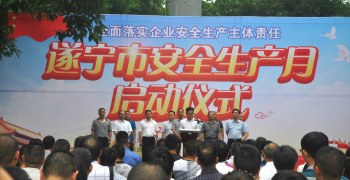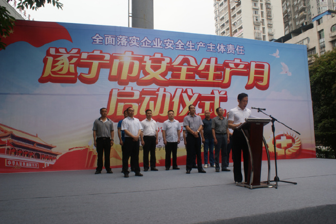 2017年6月1日上午,由遂宁市人民政府主办,船山区人民政府和市安委会办公室共同承办的2017年度“安全生产月”启动仪式在裕丰园广场举行,拉开了以“全面落实企业安全生产主体责任”为主题的“安全生产月”活动序幕。全市机关、企事业单位、社区群众共200余人参加了启动仪式。启动仪式由市政府副秘书长张智勇同志主持。