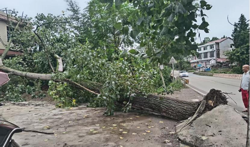大树倾倒,侵占道路通行空间。