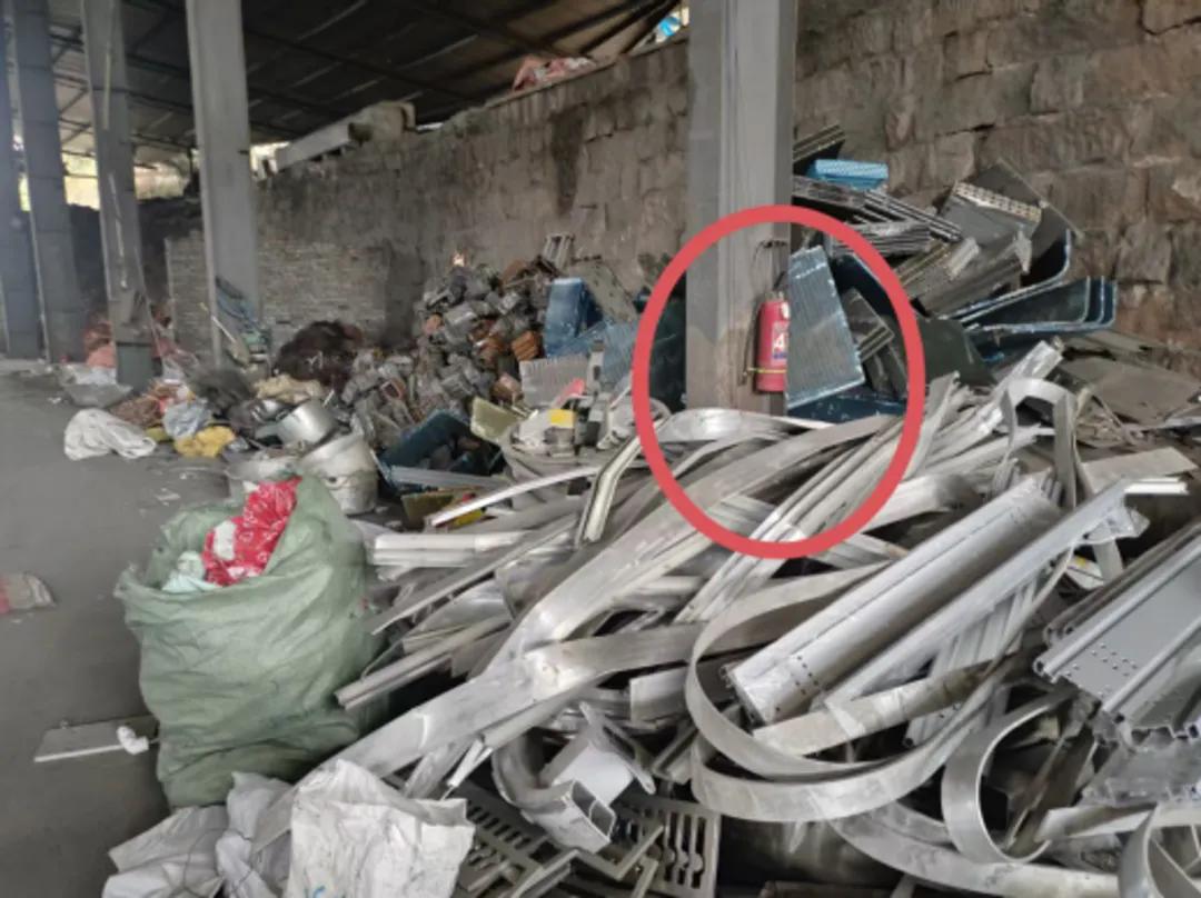 灭火器设置不符合规范,存在遮挡,且配置不够。