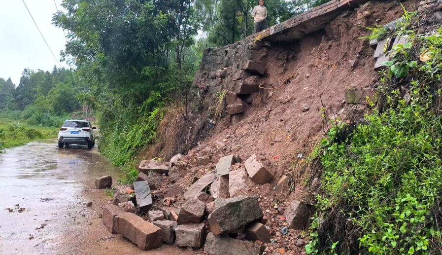 通组道路旁石堡坎垮塌。