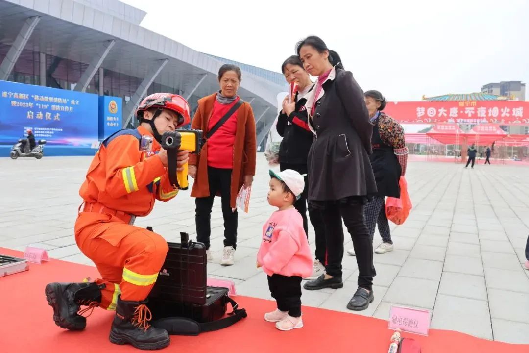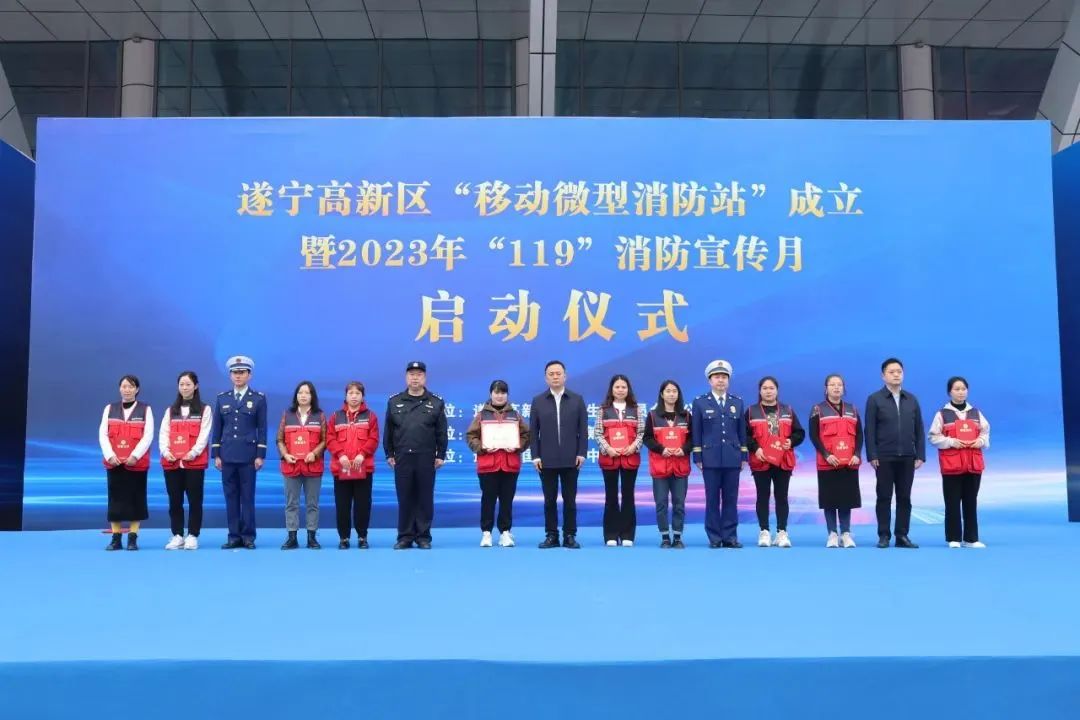 11月8日,遂宁高新区举行“移动微型消防站”成立暨2023年“119”消防宣传月启动仪式,进一步动员社会各界关注消防、学习消防、参与消防,提高市民群众消防安全素质,夯实火灾防控基础。