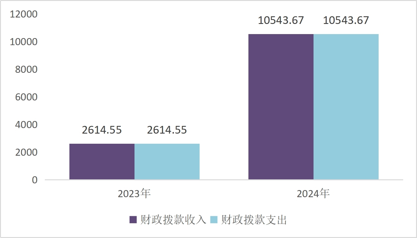 2024年财政拨款收、支总计10543.67万元。与2023年相比,财政拨款收、支总计各增加7929.12万元,增加303.27%。主要变动原因:一是本年度执法改革新调入12名执法人员,基本支出经费增加;二是新增国债资金四川省遂宁市自然灾害应急能力提升工程基层防灾项目;三是消防应急救援项目完成第二笔款项支付。