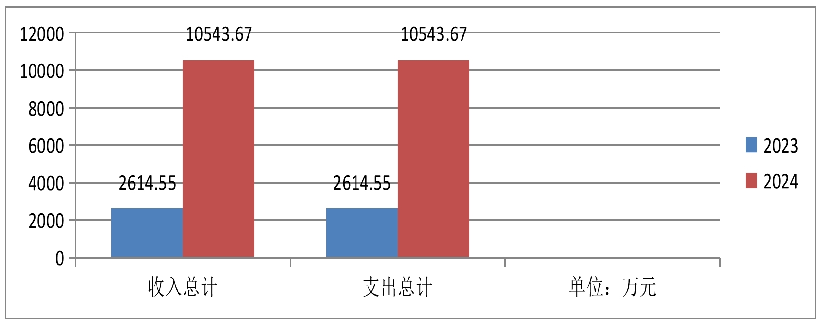 2024年度收入、支出总计均为10543.67万元。与2023年度相比,收入、支出总计各增加7929.12万元,增加303.27%。主要变动原因:一是本年度执法改革新调入12名执法人员,基本支出经费增加;二是新增国债资金四川省遂宁市自然灾害应急能力提升工程基层防灾项目;三是消防应急救援项目完成第二笔款项支付。