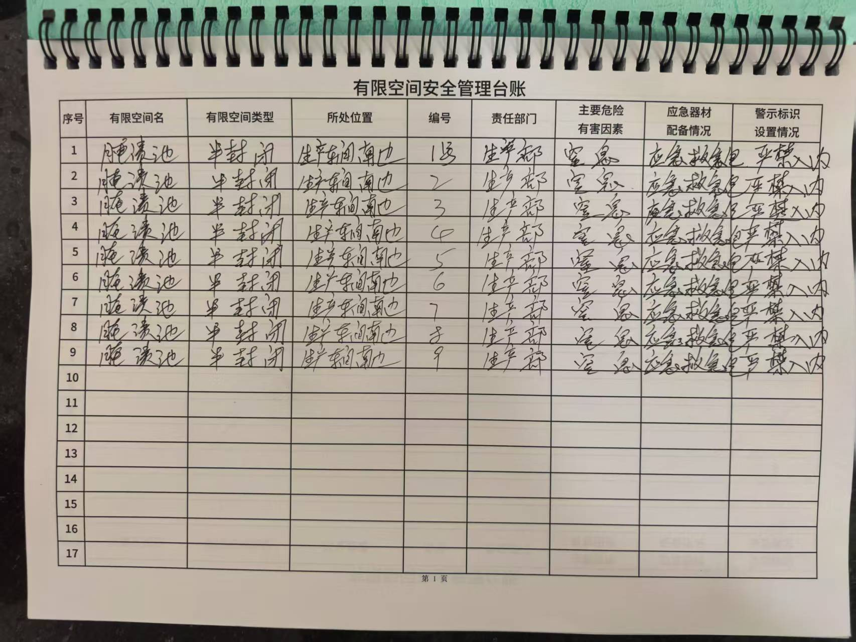 问题隐患:腌制池有限空间管理台账未明确中毒、高处坠落等风险内容。