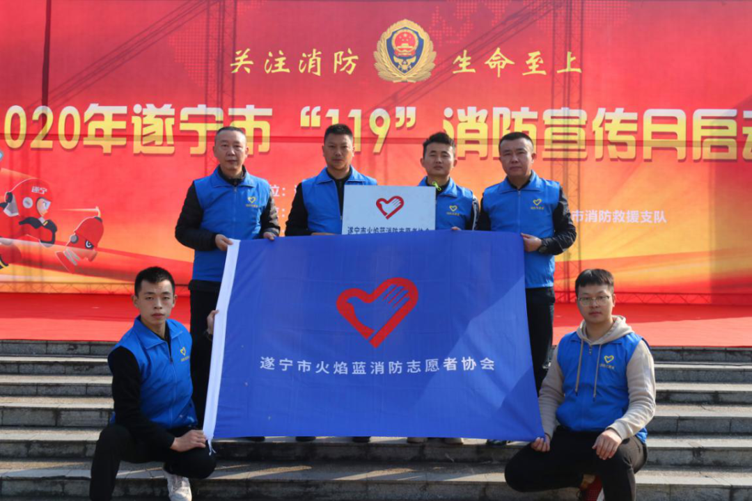 11月9日,在遂宁市2020年“119”消防宣传月活动启动仪式上,市消防救援支队为“火焰蓝”消防志愿者协会进行了授牌。
