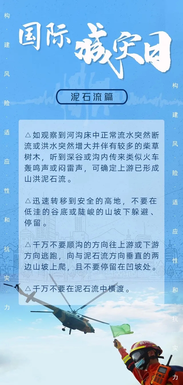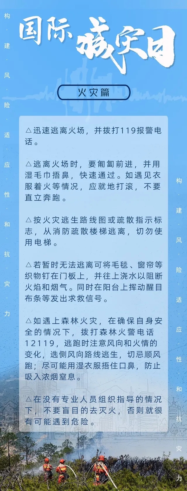 据悉,2021年10月13日是第32个国际减灾日,今年的主题是“构建灾害风险适应性和抗灾力”。在遇到灾害时,如何才能不慌乱,高效地自保逃生,下面这些自救的基本常识要记牢了。