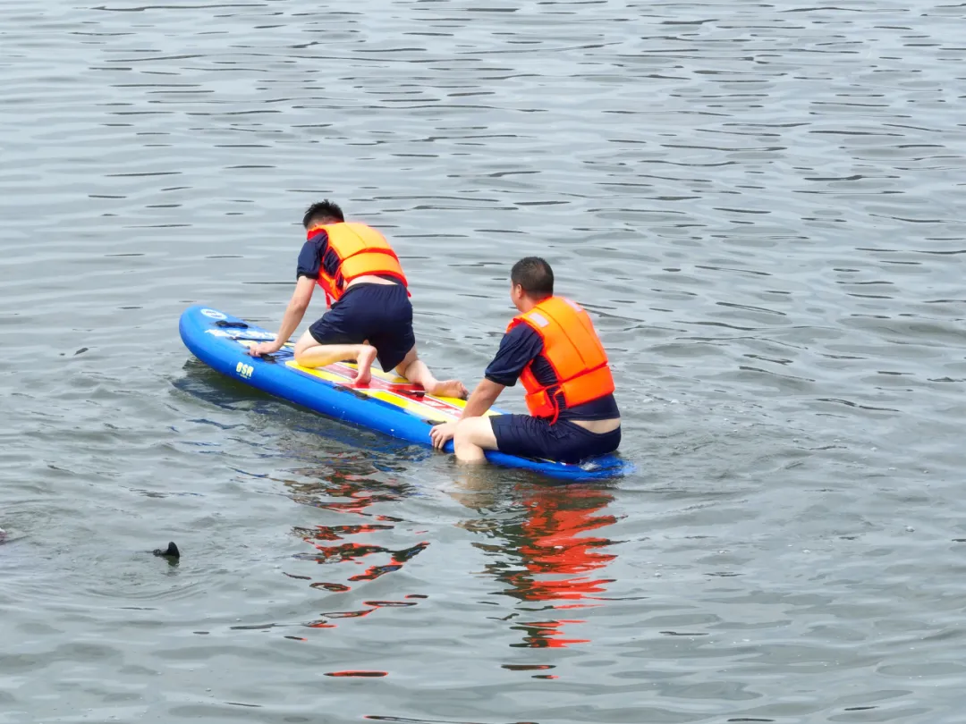 “够到了!”随着一声欢呼,3名“群众”被救生杆拉回岸边,最后1名因离岸较远,救生艇精准靠近,队员一把将其拽上艇。“脉搏微弱,需要急救!”医疗救护组迅速冲上前,跪在地垫上做心肺复苏,按压、开放气道、人工呼吸,一套流程行云流水,待“群众”恢复微弱呼吸,立即用担架送往“医院”。