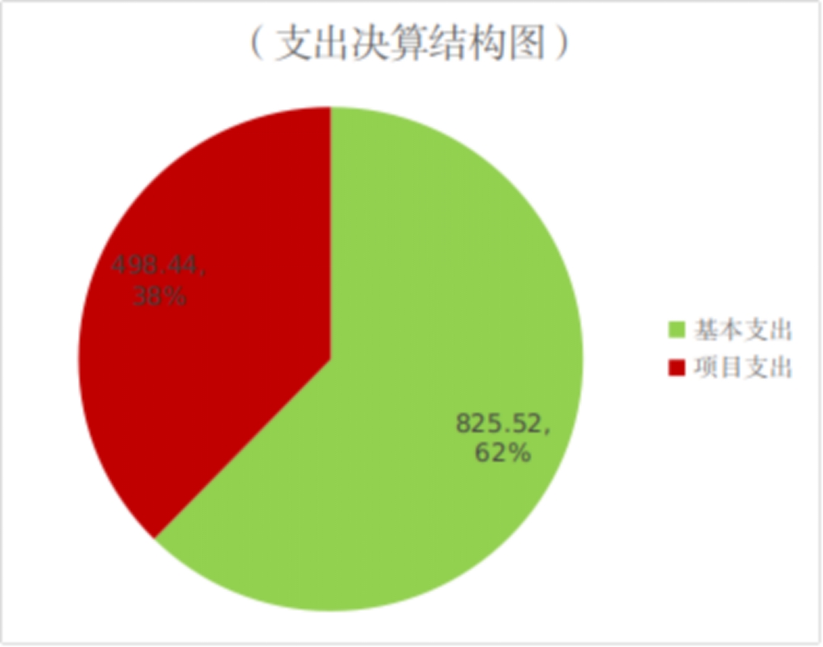 2020年本年支出合计1323.96万元,其中:基本支出825.52万元,占62.35%;项目支出498.44万元,占37.65%;上缴上级支出0万元,占0.00%;经营支出0万元,占0.00%;对附属单位补助支出0万元,占0.00%。