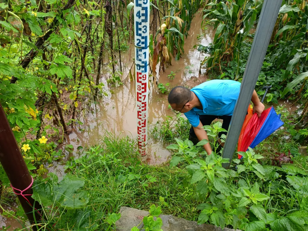 “雨太大,莫摘南瓜了,赶紧回去,注意安全!”“水位太高,没法通行,绕道吧。”“水涨起来快得很,大伙别走近了,离远一些。”……除了观察水位,他们还对过路群众提醒,劝离赶来田间冒险抢摘农作物的村民。