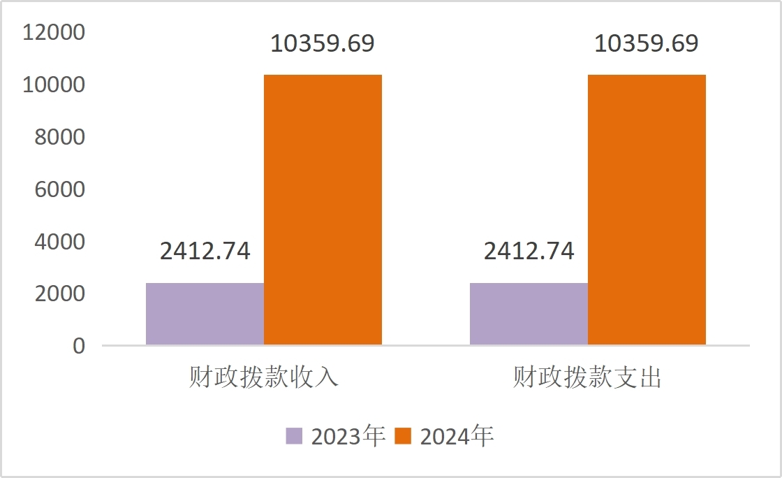 2024年财政拨款收、支总计10359.69万元。与2023年相比,财政拨款收、支总计各增加7946.95万元,增加329.37%。主要变动原因:一是本年度执法改革新调入12名执法人员,基本支出经费增加;二是新增国债资金四川省遂宁市自然灾害应急能力提升工程基层防灾项目;三是消防应急救援项目完成第二笔款项支付。