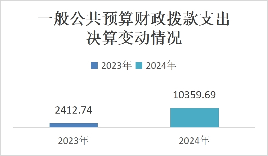 2024年一般公共预算支出决算数为10359.69万元,完成预算96.64%。其中: