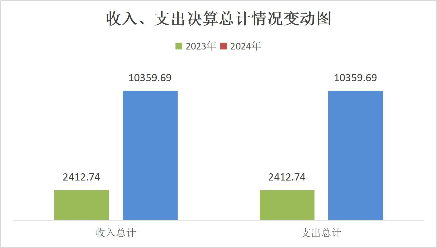 2024年度收入、支出总计均为10359.69万元。与2023年度相比,收入、支出总计各增加7946.95万元,增加329.37%。主要变动原因:一是本年度执法改革新调入12名执法人员,基本支出经费增加;二是新增国债资金四川省遂宁市自然灾害应急能力提升工程基层防灾项目;三是消防应急救援项目完成第二笔款项支付。