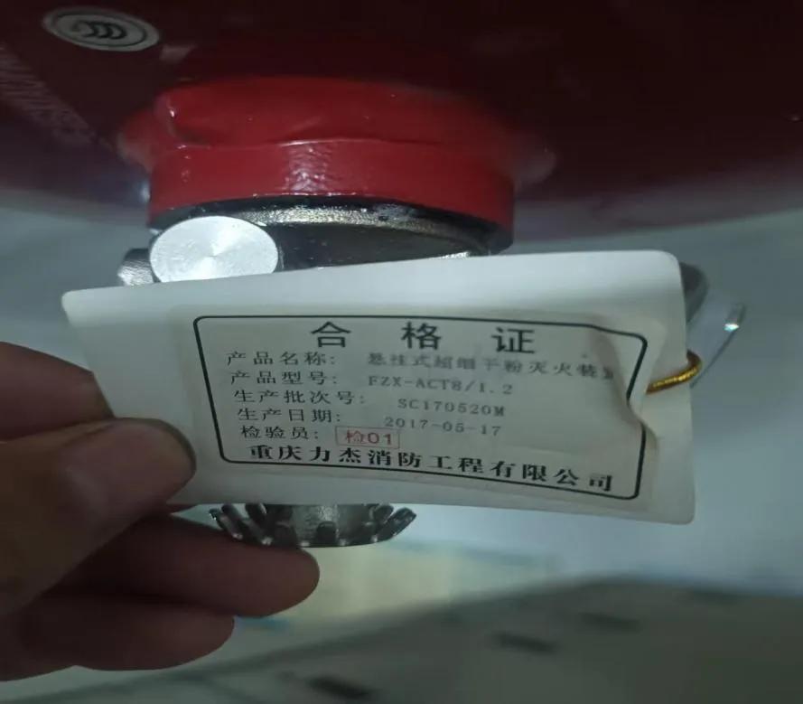 遂宁市第一人民医院油房院区发电机房悬挂式干粉灭火器生产日期为2017年5月17日,出厂期满5年后每满两年应送修,干粉灭火器应于2027年5月17日报废。此次检查发现该悬挂干粉灭火器未按时送修。