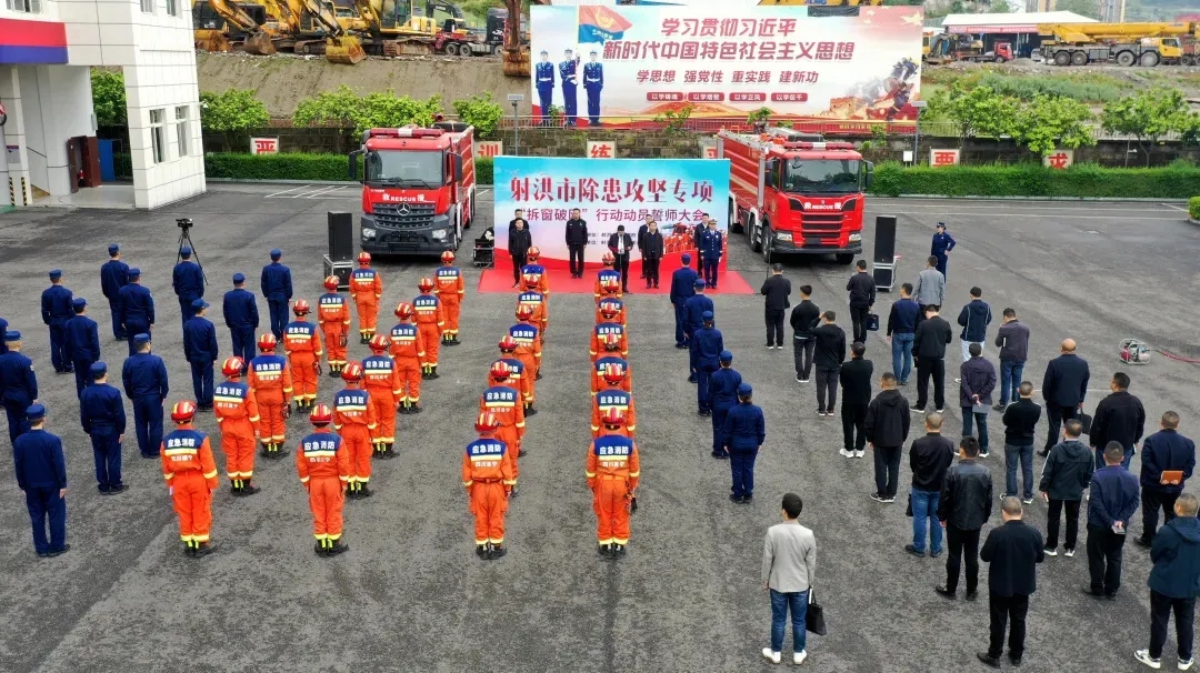 为深入贯彻落实国家消防救援局《关于拆除人员密集场所门窗设置影响逃生和灭火救援的障碍物的通告》要求,深刻吸取近期重特大火灾事故教训,扎实开展消防安全集中除患攻坚大整治行动。4月7日,射洪市组织召开除患攻坚专项“拆窗破网”行动动员誓师大会。