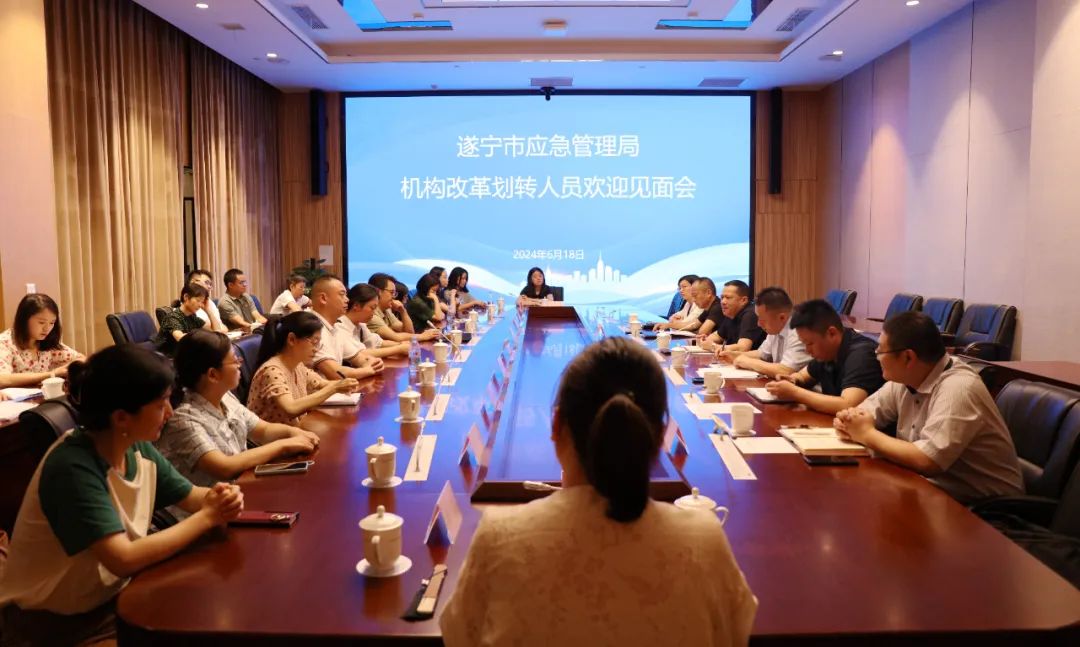 为加快推进机构改革相关工作,6月18日,遂宁市应急管理局召开机构改革划转人员欢迎见面会。市政府副秘书长,市应急局党委书记、局长宋建军出席会议并讲话;市应急局党委委员、机关党委书记杨劲,党委委员、副局长、综合行政执法支队支队长廖治刚参加会议。