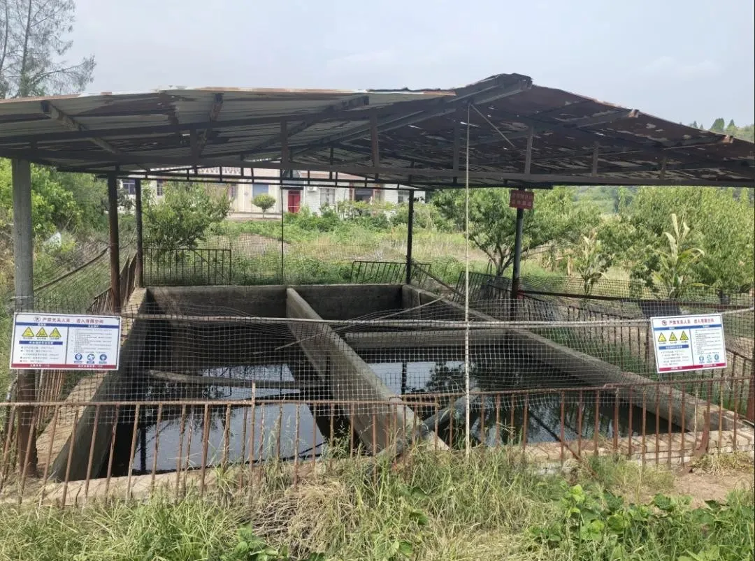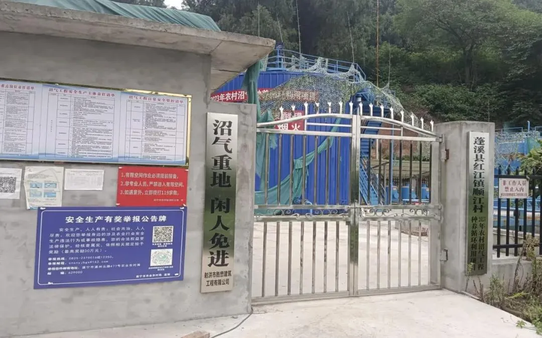 沼气工程大门上锁,沼气工程区域增设安全风险告知牌。