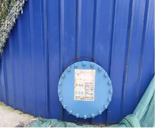 沼气发酵罐、湿式气柜检修出入口(人孔)设置规范的安全警示标志。