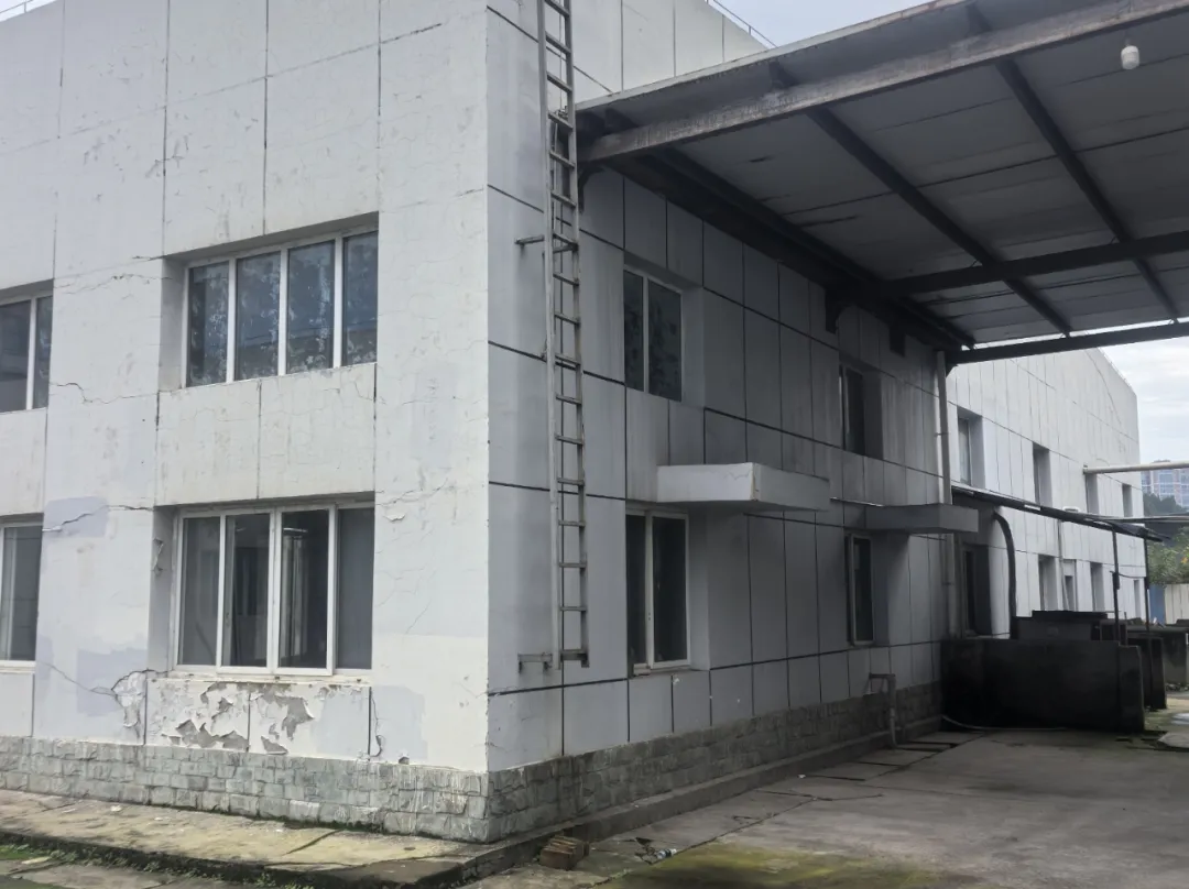 车间右侧爬梯无安全护笼。