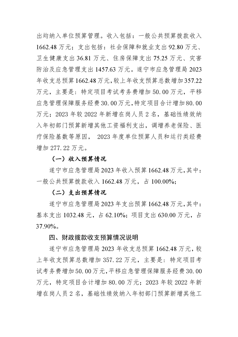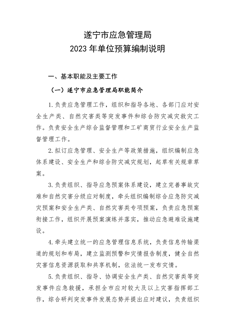遂宁市应急管理局2023年单位预算公开