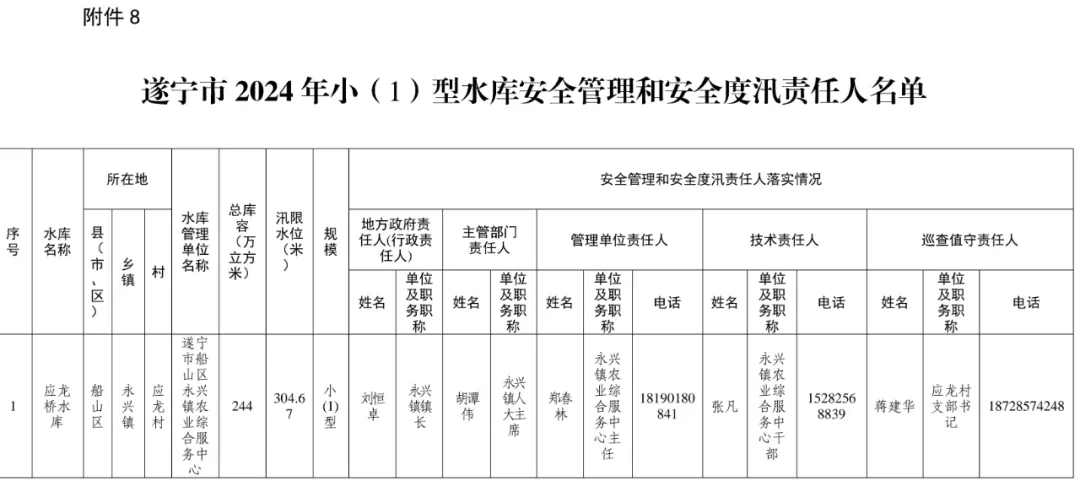 8.遂宁市2024年小(1)型水库安全管理和安全度汛责任人名单