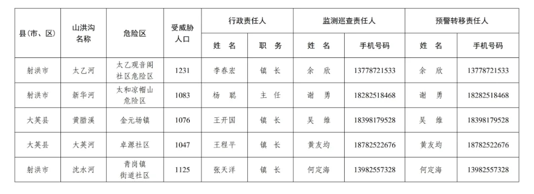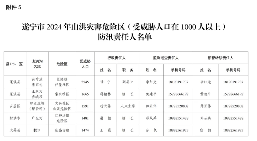 5.遂宁市2024年山洪灾害危险区(受威胁人口在1000人以上)防汛责任人名单