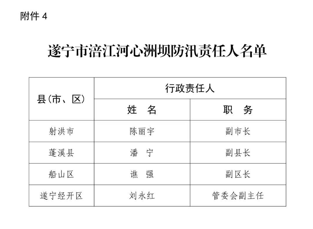 4.遂宁市涪江河心洲坝防汛责任人名单