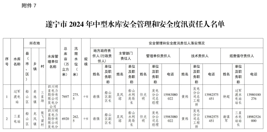 7.遂宁市2024年中型水库安全管理和安全度汛责任人名单